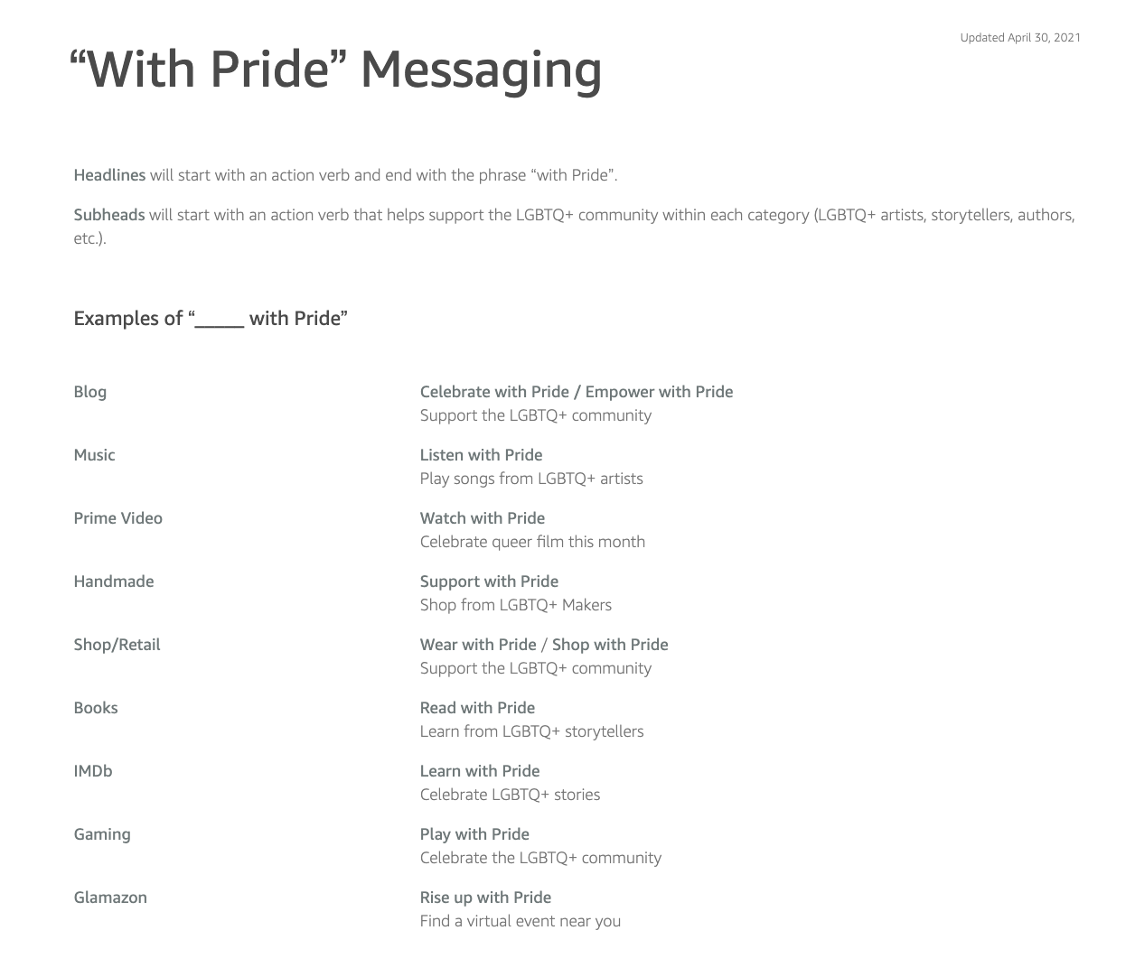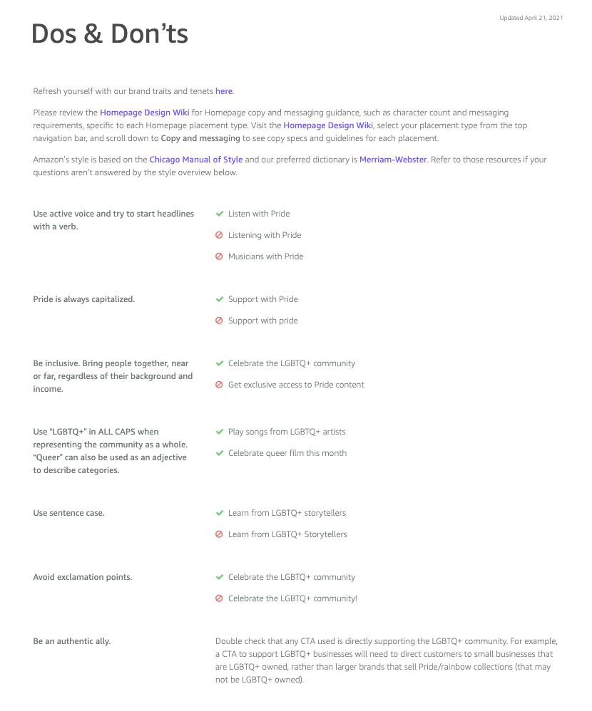 Create a style guide for any Amazon team participating in Pride 2021.